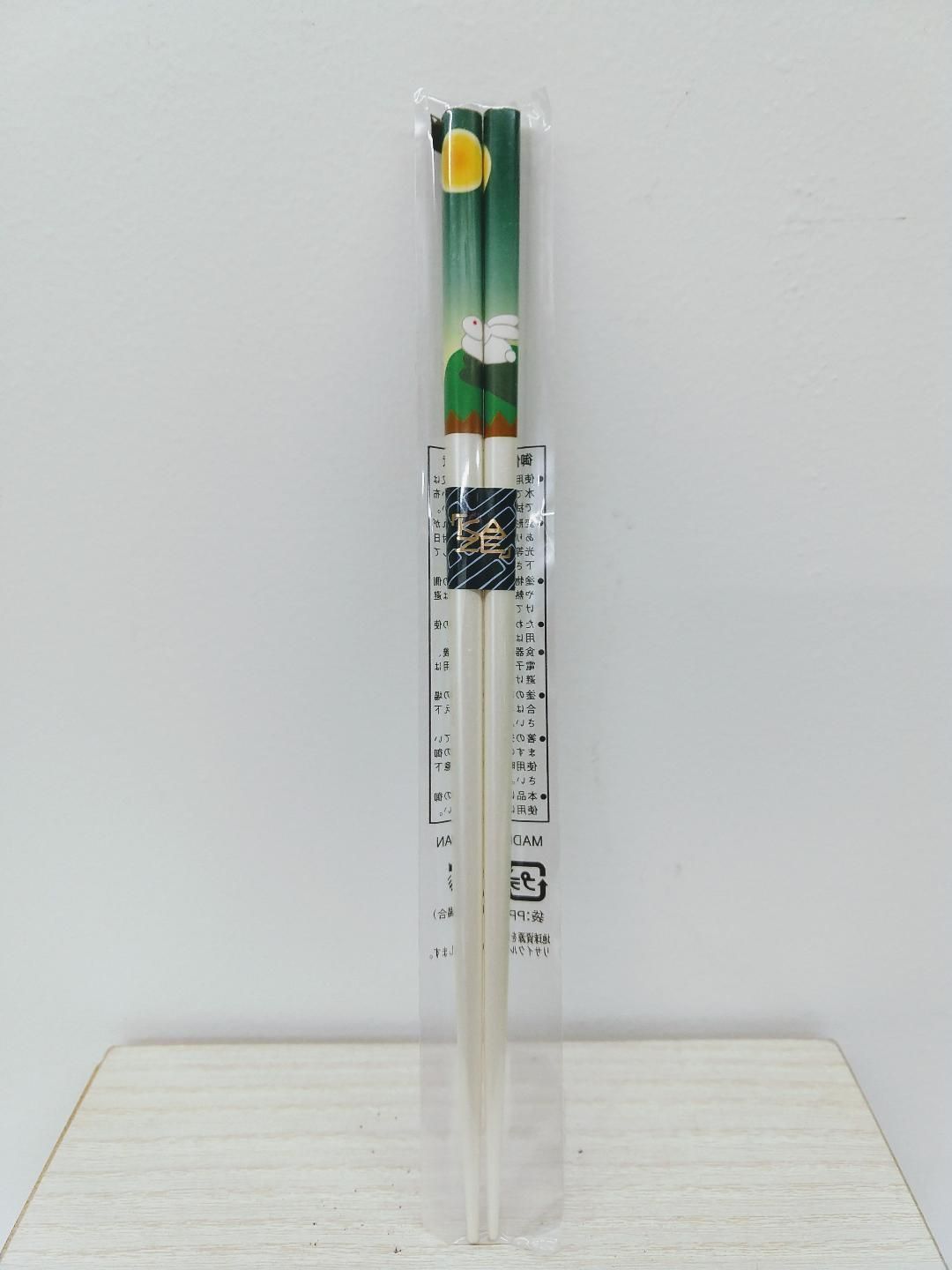 8 1/2" long white and green lacquer chopsticks, Rabbit in the Moon.
