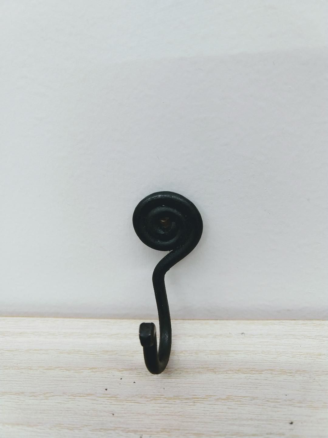 Small 2" hand forged iron hook with swirl detail.