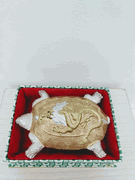 A molded ink block in painted golden dragon. A gift for the scholar celebrating birthday. Comes with a padded box with glass lid.