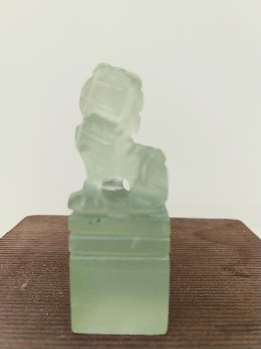 A lion atop a dense jade chop, 2 1/4" height. Uncarved.