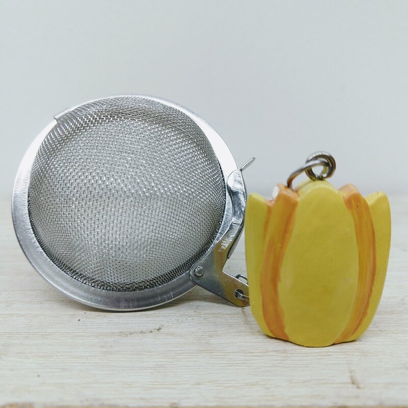 2" SS tea ball with yellow flower ornament. Fill half with tea to make 1 cup of tea.